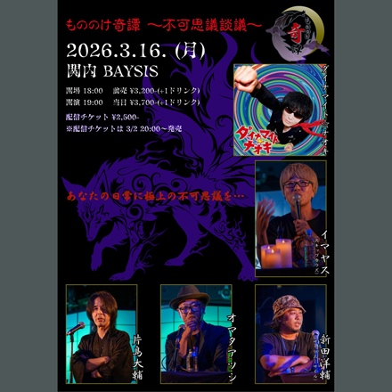 開場 18:30 開演 19:00 │ 当日 ¥3500  前売 ¥3000  配信 ¥2500