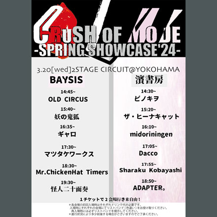 開場 11:30 開演 12:00 │ 当日 ¥2500  前売 ¥2000