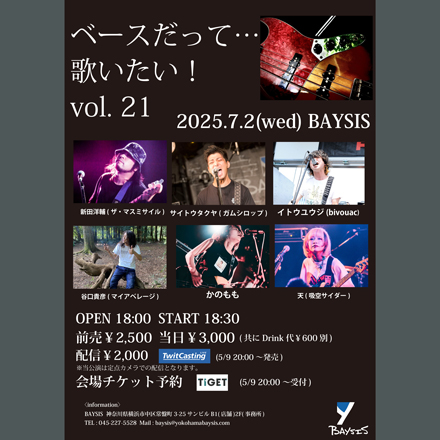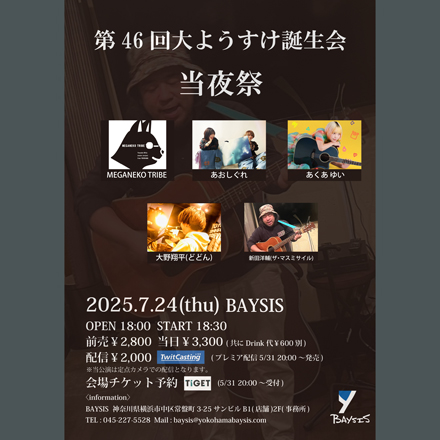 開場 18:30 開演 19:00 │ 当日 ¥3300  前売 ¥2800  配信 ¥2000