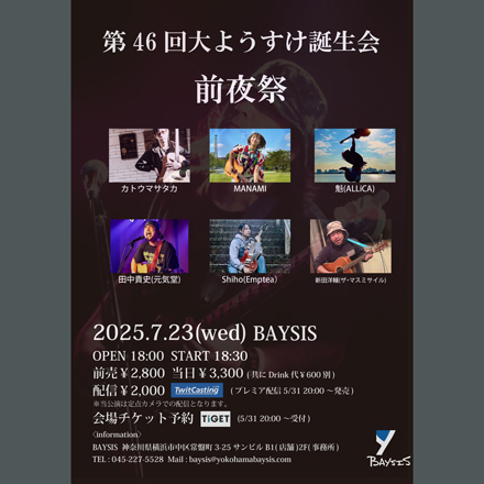 開場 11:30 開演 12:00 │ 当日 ¥2500  前売 ¥2000  配信 ¥2000