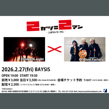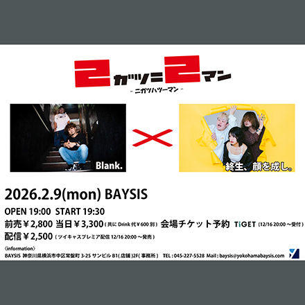 開場 18:30 開演 19:00 │ 当日 ¥3300  前売 ¥2800  配信 ¥2000