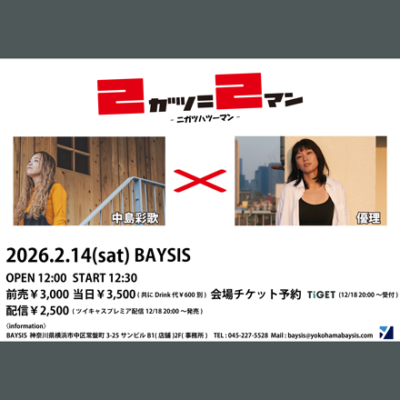 開場 12:00 開演 12:30 │ 当日 ¥2500  前売 ¥2000  配信 ¥2000
