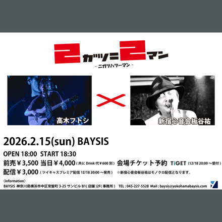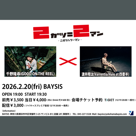 開場 17:30 開演 18:00 │ 当日 ¥4000  前売 ¥3500  配信 ¥2500