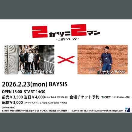 開場 18:00 開演 18:30 │ 当日 ¥2800  前売 ¥2300  配信 ¥2000